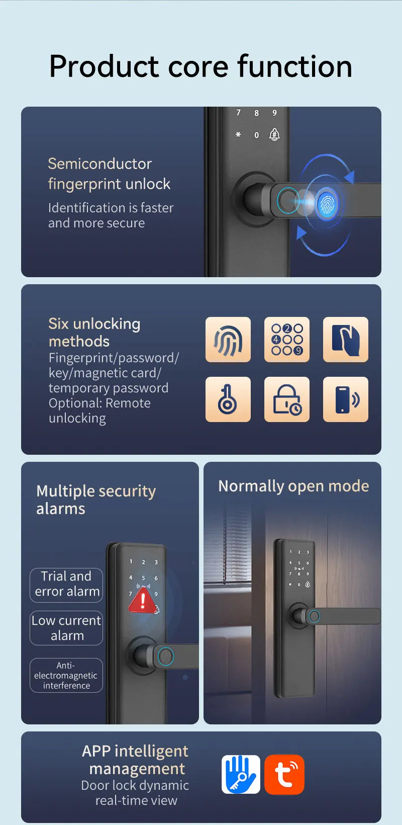 • Application Tuya/Smart Life – Déverrouillage et contrôle à distance via WiFi
