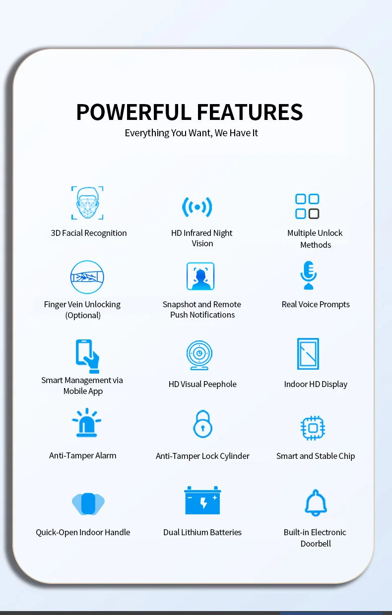 Découvrez cette serrure connectée nouvelle génération combinant contrôle d'accès avancé et système d'interphone audio bidirectionnel. Équipée de la technologie Tuya Smart, elle vous permet de voir, communiquer et déverrouiller votre porte depuis n'importe où dans le monde.